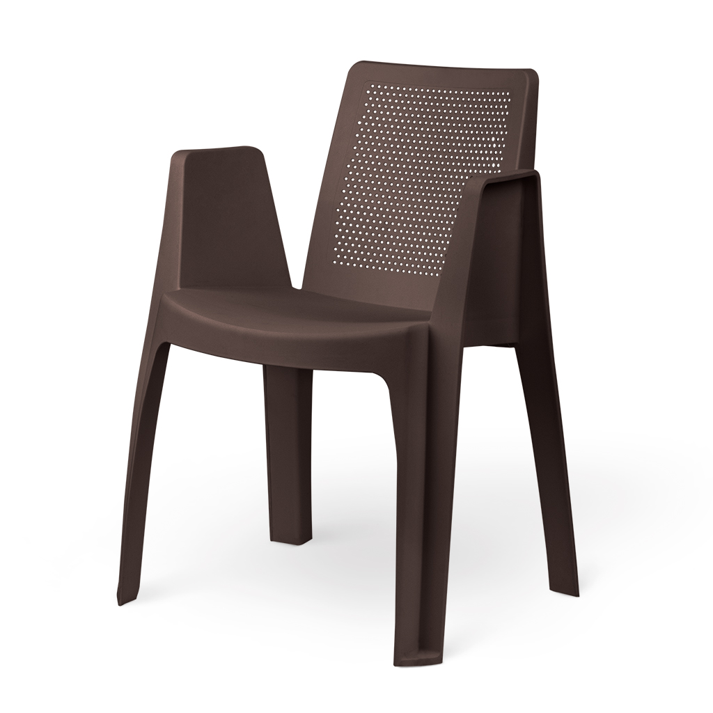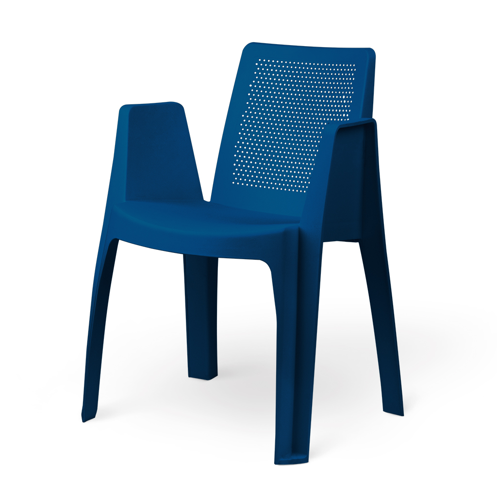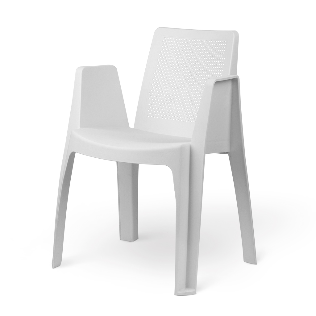 صندلی دسته دار پلیمری یک تکه از جنس پلی پروپیلن تقویت شده با مواد معدنی؛ در دو طرح پشتی متفاوت؛ سطح ظاهری با جلوه مات؛ رعایت اصول ارگونومی؛ قابل ارائه در ۹ رنگ؛ مقاوم در برابر اشعه ماوراء بنفش، نشیمن عمیق و تکیه گاه بلند.