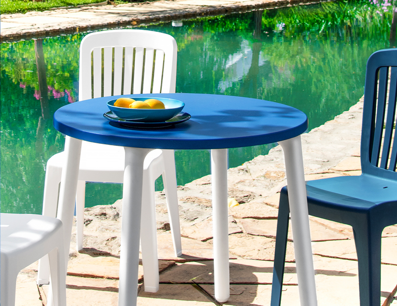 میز پلیمری 4 نفره از جنس پلی پروپیلن تقویت شده با مواد معدنی؛ دارای پروفیل فولادی جهت تقویت صفحه؛ سطح ظاهری مات؛ قابلیت مونتاژ و دمونتاژ پایه ها؛ دارای جاچتری در مرکز صفحه جهت نصب چتر و سایه بان؛ قابل ارائه در 9 رنگ؛ مقاوم در برابر اشعه ماوراء بنفش.