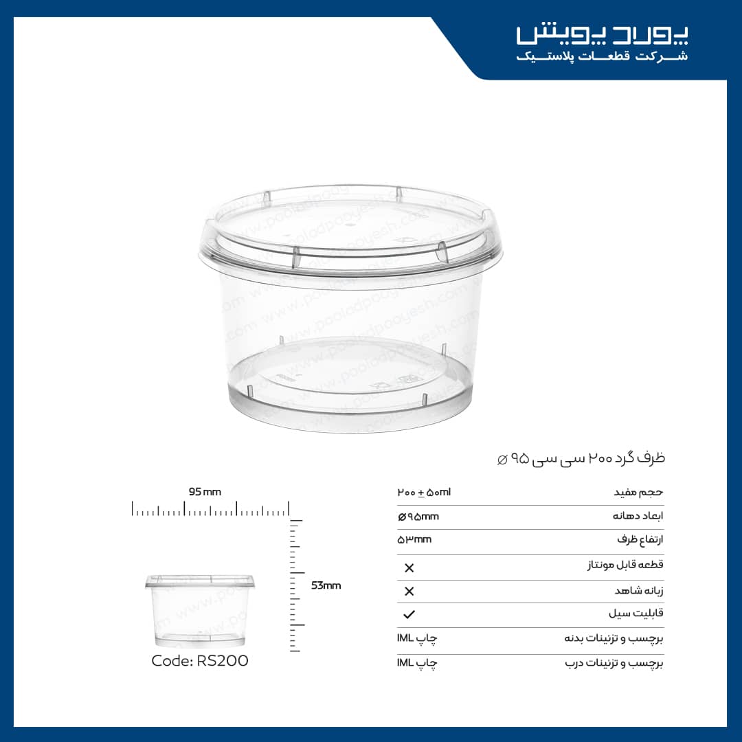 سطل گرد پولاد پویش شفاف 200 سیسی، انتخاب ایدهآل برای نگهداری و بستهبندی محصولات غذایی، با ظرفیت مناسب و طراحی شفاف برای نمایش محتوا. بسته 270 عددی آن، بهترین گزینه برای مصارف بالا و فروشگاههای مواد غذایی است. با کیفیت بینظیر و قیمت مناسب، خریدی اقتصادی و هوشمندانه داشته باشید!