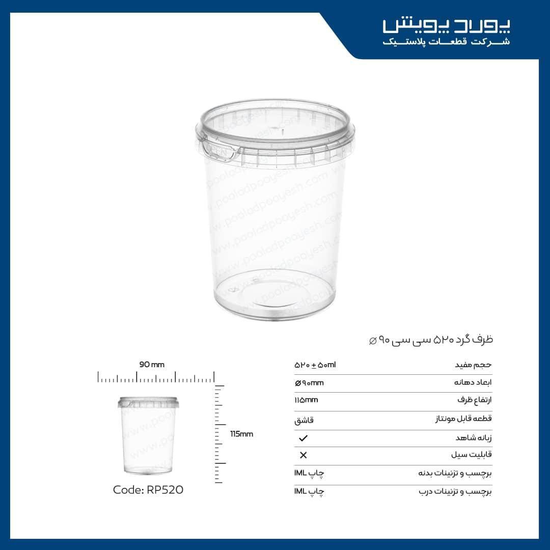 سطل گرد پولاد پویش شفاف 520 سی سی ( 300 عددی )