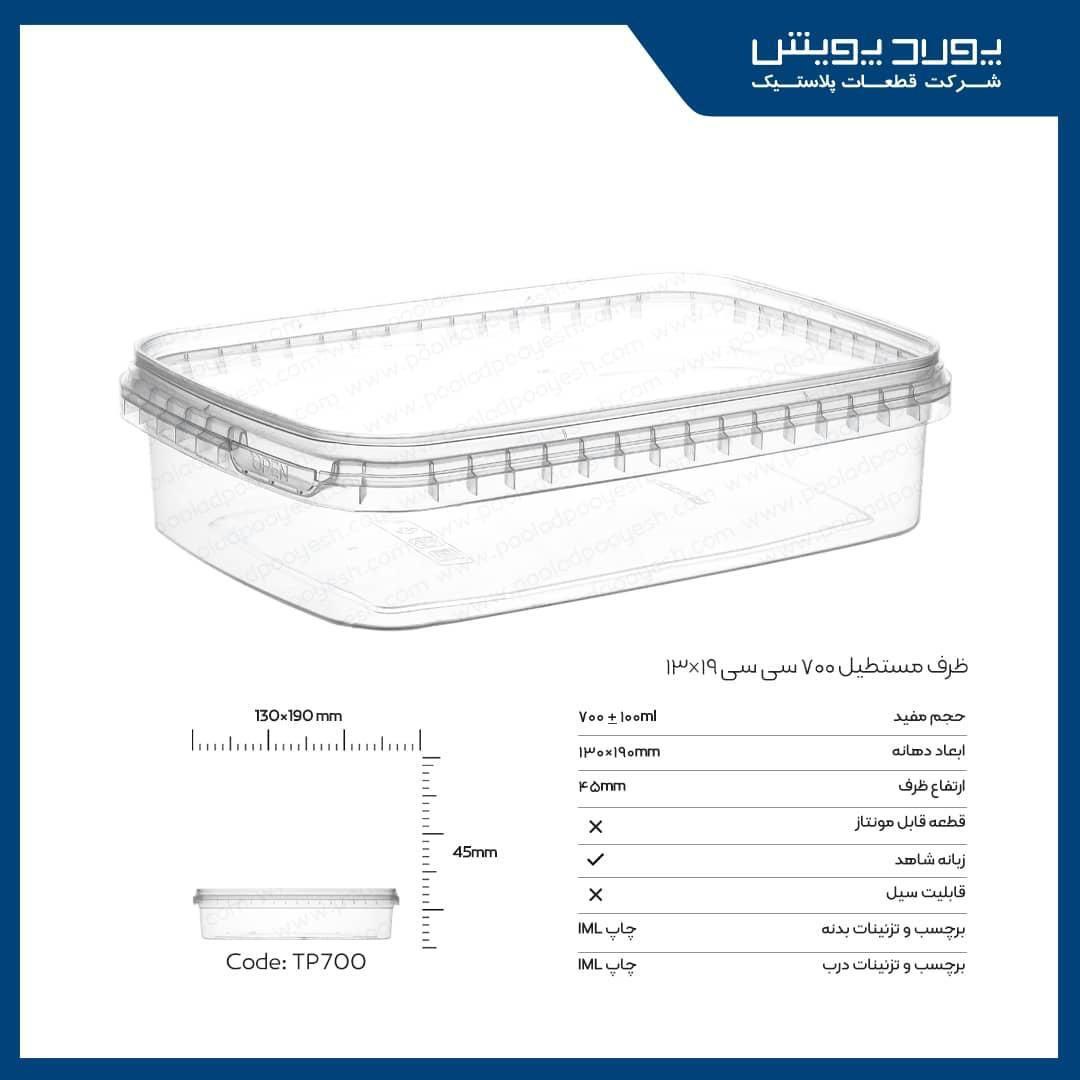 ظرف ماکروویوی مستطیل پولاد پویش شفاف با ظرفیت 700 سی‌سی، انتخابی ایده‌آل برای نگهداری و گرم‌کردن انواع غذاها در ماکروویو است. با بسته‌بندی 150 عددی، این محصول به شما امکان می‌دهد به راحتی غذای خود را ذخیره کرده و از تازگی آن لذت ببرید. مقاومت بالا و طراحی شفاف، کیفیت و کارایی را تضمین می‌کند.